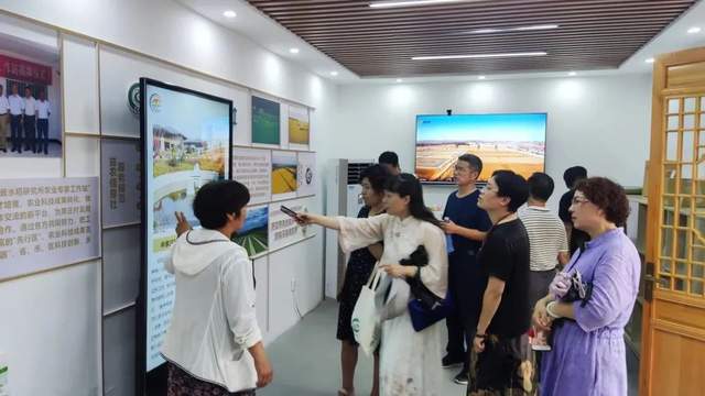 7月1日上午,作家们参观完黄河杨庄饮水闸来到了刘七沟村荒滩地,听当地负责人讲述村里几代人怎样把千亩黄河荒滩变为一片片良田。站在千亩银杏林前,吹着美里湖刮来的风,作家们感慨人力能把荒滩变成希望田的伟大。