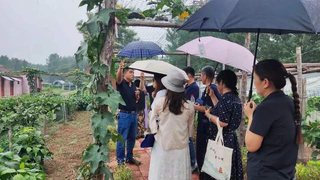 下午,丝丝小雨飘过,凉意顿生。采风团来到了明里庄的生态农庄,参观了新式冬瓜、良种葡萄,看见了菜农们洋溢着幸福的笑脸。
