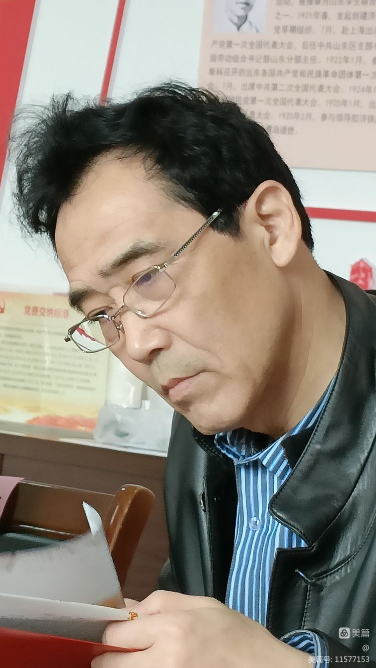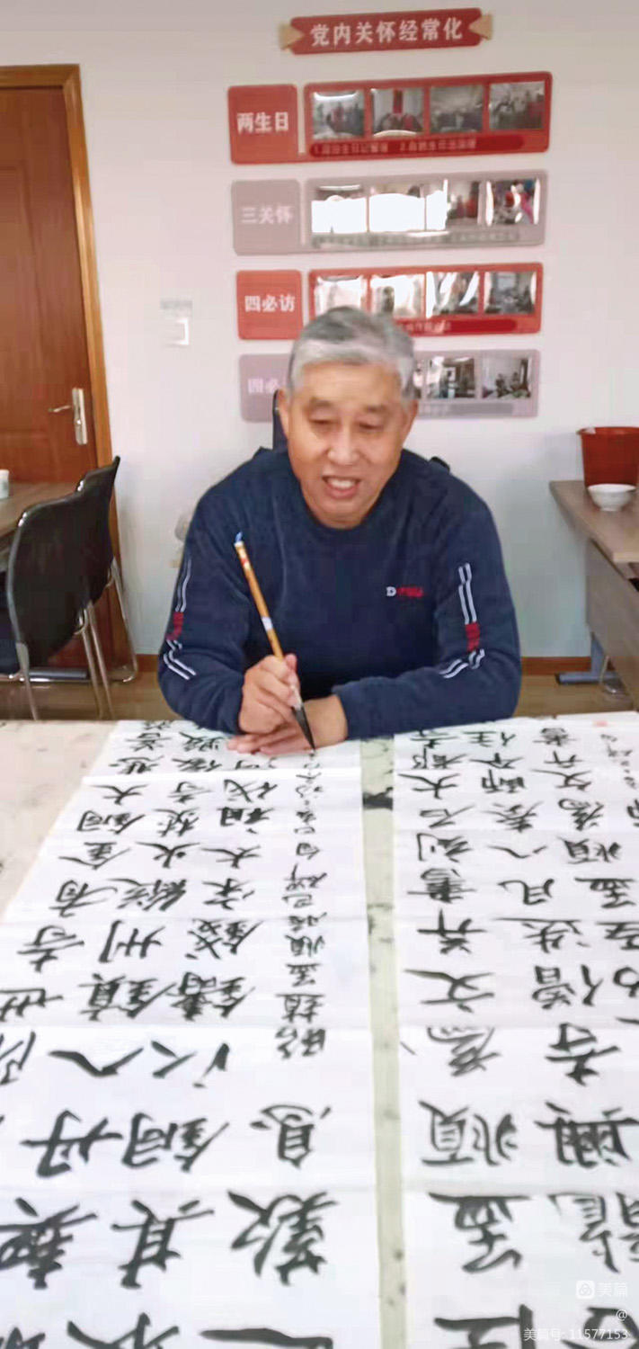 淄川区老年老干部书画两会常务副会长贾梅远先生在座谈会上▼