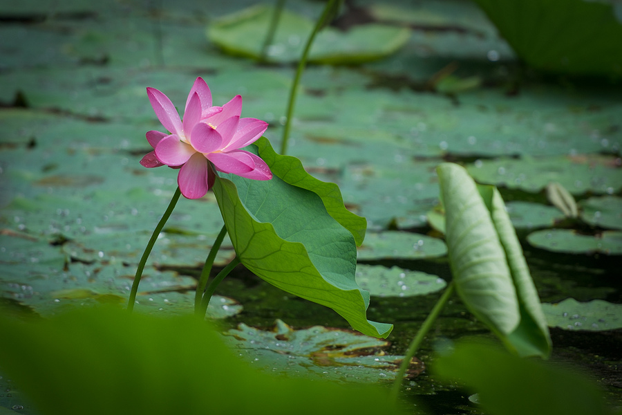 青枝树叶卧鸣蝉,绿水池塘站玉莲。