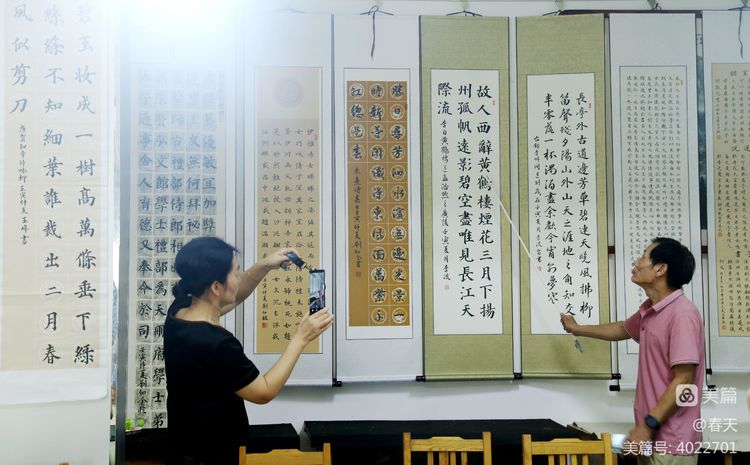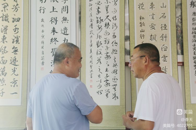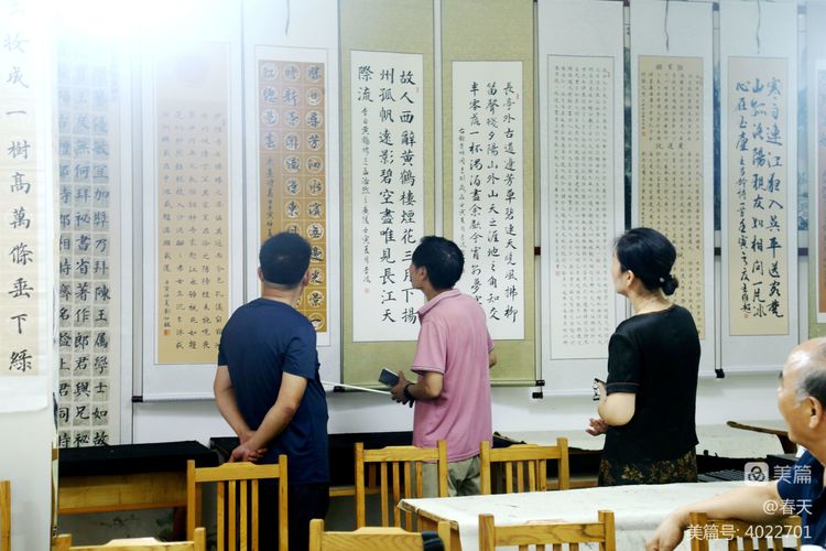 点评完毕,师生们在书香翰墨的艺术氛围中,即兴挥毫泼墨,行书、楷书、隶书等多种字体各显神韵。学员们通过自己的审美追求和笔墨功夫来彰显自己的学习成果和风格。不同书体的作品,从不同侧面展现出共同特征,那就是学员们对中华优秀传统文化的继承,对故乡般阳大地深深的爱恋!
