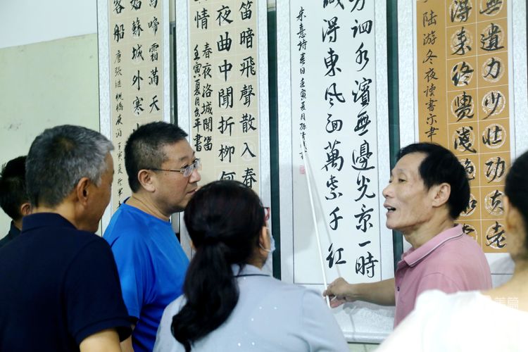点评会上,区老年大学指导教师王明学老师,对每位学员作品的优缺点进行了逐一点评,从用笔、结构、章法、“形”与“神”之韵,到字的浓谈干湿、大小变化以及行距宽窄,作品的章法、印章的处理等,多角度各方位,都进行了深入浅出、精妙独到的点评。