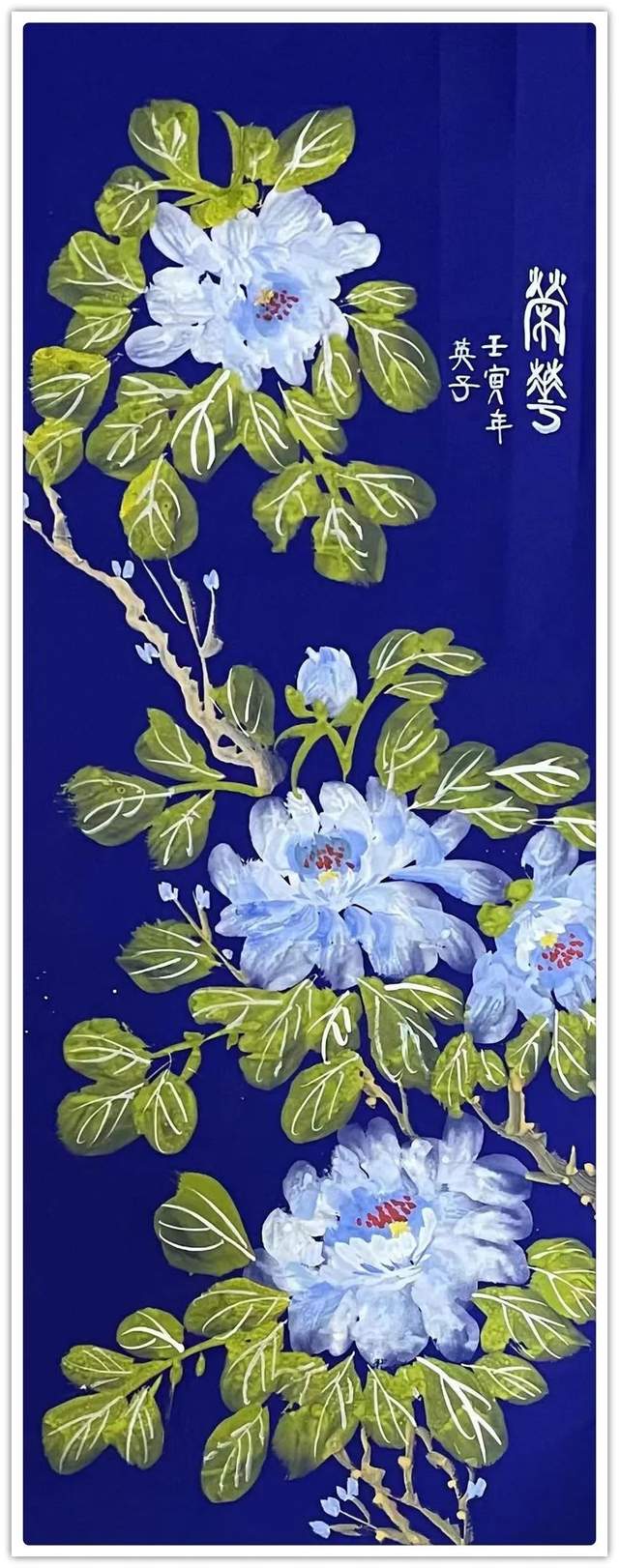 蒋小萍,女,重庆人,字,英子。国家一级美术师,1992年中国书画函授大学中国画专业毕业,喜爱中国画,专 攻花鸟画。2014年获香港华人书画家。自幼酷爱书画,刻苦研习。在绘画的色彩、构图方面勇于探索和尝试,充 分展示了本人对大自然的热爱和崇尚,不断追求艺术与生活的紧密结合,在树皮、树叶、竹板、竹筒、石头上作 画。逐渐形成了自己的独有风格。特别是写意牡丹用色艳丽、唯美有本人对花独有艺术体验和展现。同时在兰草 、隶书、篆书等也有自己的风格。