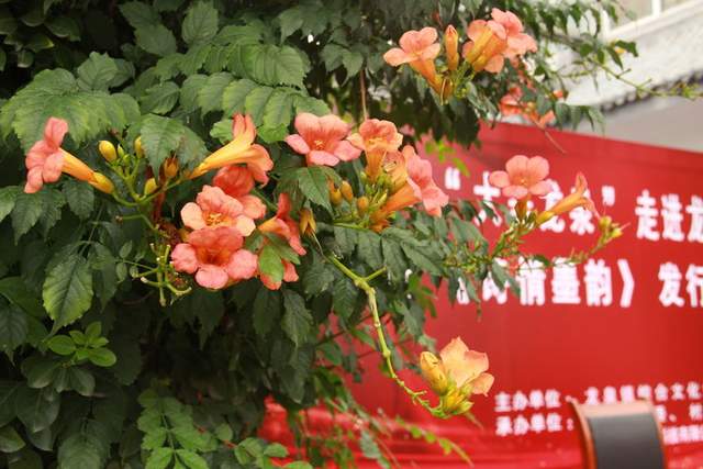 凌霄花开了,开得很艳,为即将开始的会议送上了好彩头。昨日的雨,送来了清凉与舒适,人们在蓝天下享受着辛勤劳动的成果带来的高兴与惬意。带着新墨香的《诗词墨韵》,在阅读者的手里传递,一睹为快带来了感叹与满足。
