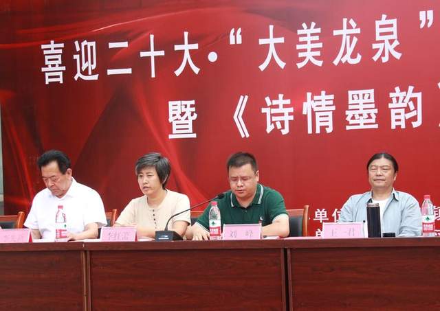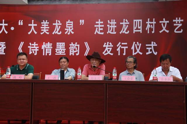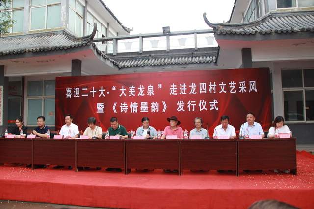 区委宣传部、区人大、 区文联、区老年书画学会、区诗词学会、区镇文化系统领导都参加了活动并分别讲话。仪式结束后,龙四村党委书记王溪强带领大家参观了龙泉镇“一街一湖一企”——玉石街、龙西湖、山东淄磁电子科技有限公司,并举行了现场书法笔会。区镇老年书画协会、诗词学会共近80人参加了采风活动,大家纷纷写诗、挥毫致贺。