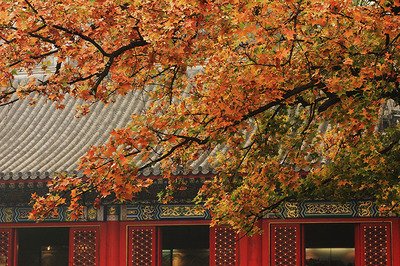 甘露寺红栌树,宜静园游如骛。