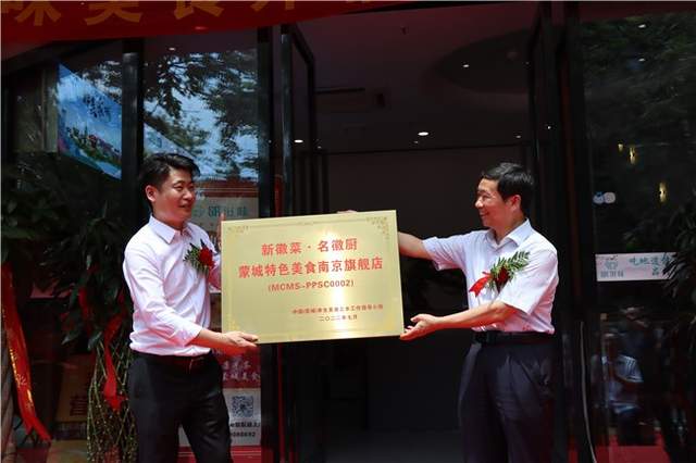 而后蒙城县人社局副局长、中国(蒙城)养生美食之乡工作领导小组副组长邓伟宣读关于“新徽菜·名徽厨—蒙城特色美食南京旗舰店”授牌的决定。
