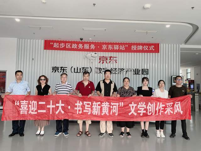 在京东(山东)数字经济产业园,解说人员向作家们做了全面介绍——“2018年9月,京东与济南起步区以‘技术+产业’模式开启全面战略合作,山东产业园、京东济南智能电商运营中心(亚洲一号仓)纷纷落地。产业园已吸引330家企业入驻,并孵化了国家级科技型中小企业10家、高新技术企业6家、规模以上企业25家……”