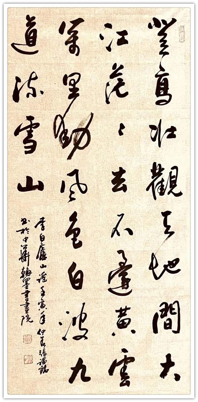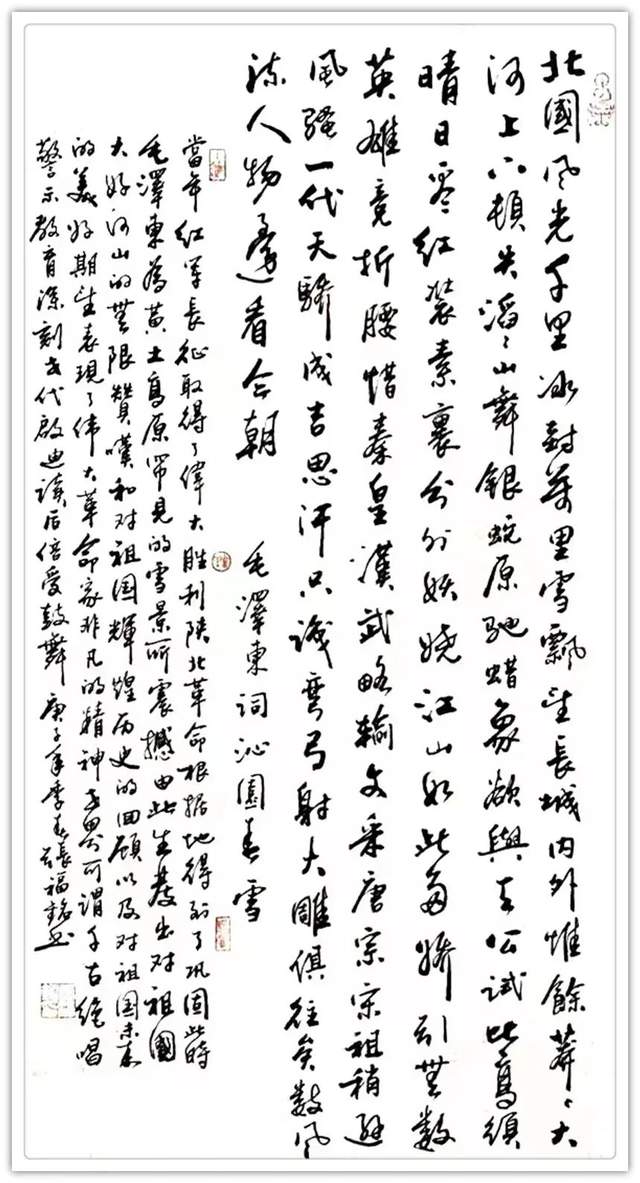 文武兼备,书画双修。作為歐陽中石大師的弟子,張先生书法线条造型的意识相当强烈,一笔拉过来,如临危居高,作高低有趣。一笔纵过去,如虬龙蜿蜒,写牵丝映带。笔与手合,手向心师,经过激楚浪以成文的表达,写出了小草千字文的铁点银钩,亦可以把兰亭序的千变万化表达得出神入化。技达精时谓之巧,艺到峰时名为妙。先生之书法亦如丹青创作,巧妙兼生,功在三山巅,佳谈八方誉!