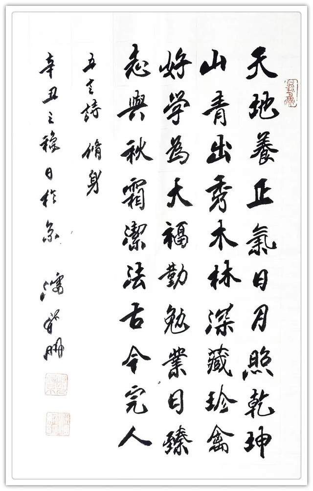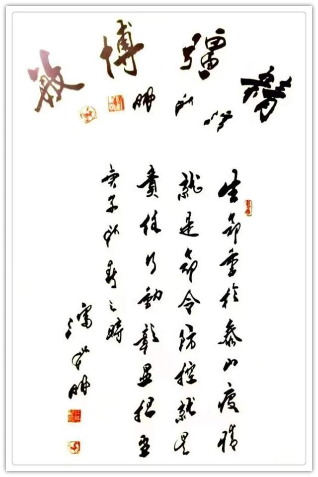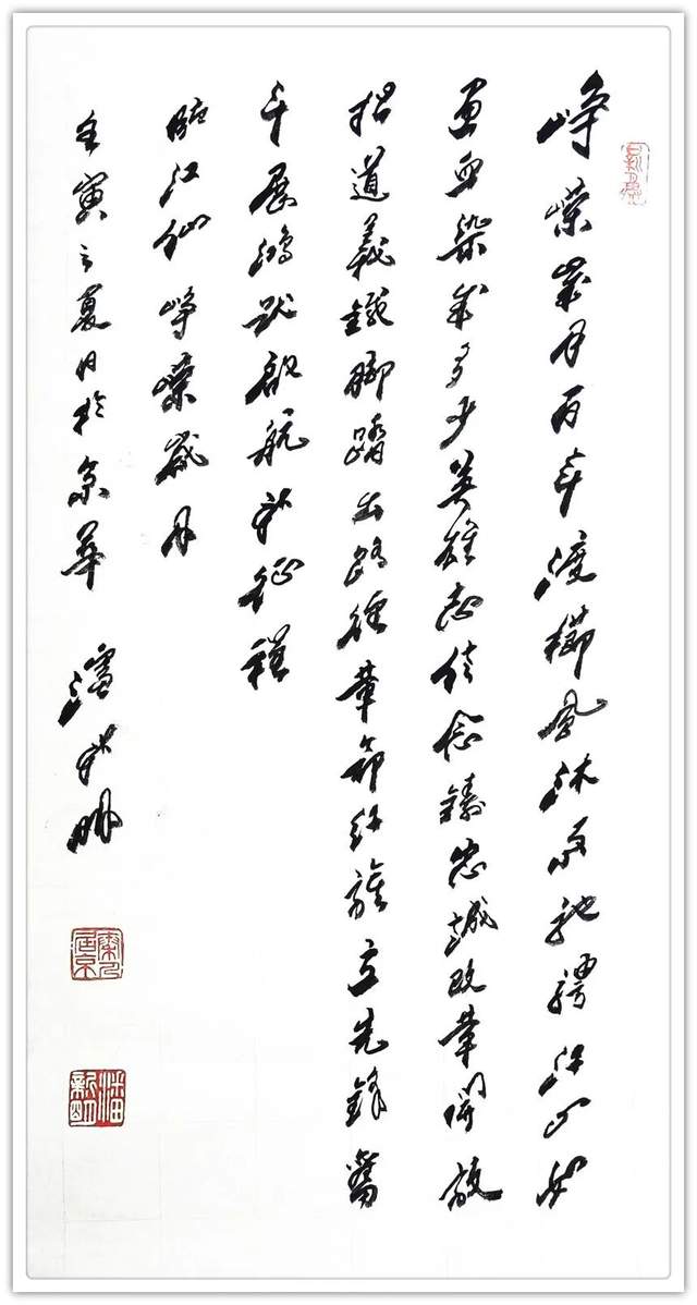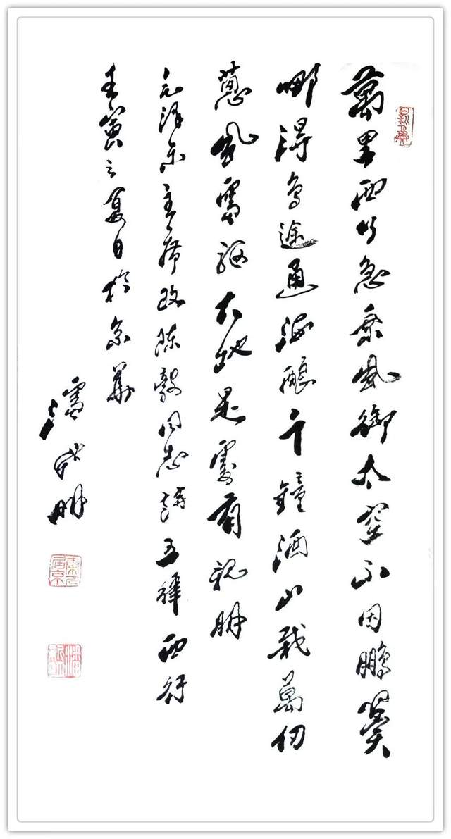 在五十多年笔墨生涯中,他在继承祖国传统书法艺术基础上,博采古今之秀,融入新时代、新思想、新内容等元素、独具匠心,摸索出了一条自己书法、诗词艺术的创作思维、方法、路径;作品出神入化,既有历史经典艺术的传承又有新时代的风范,实力更高于声望。
