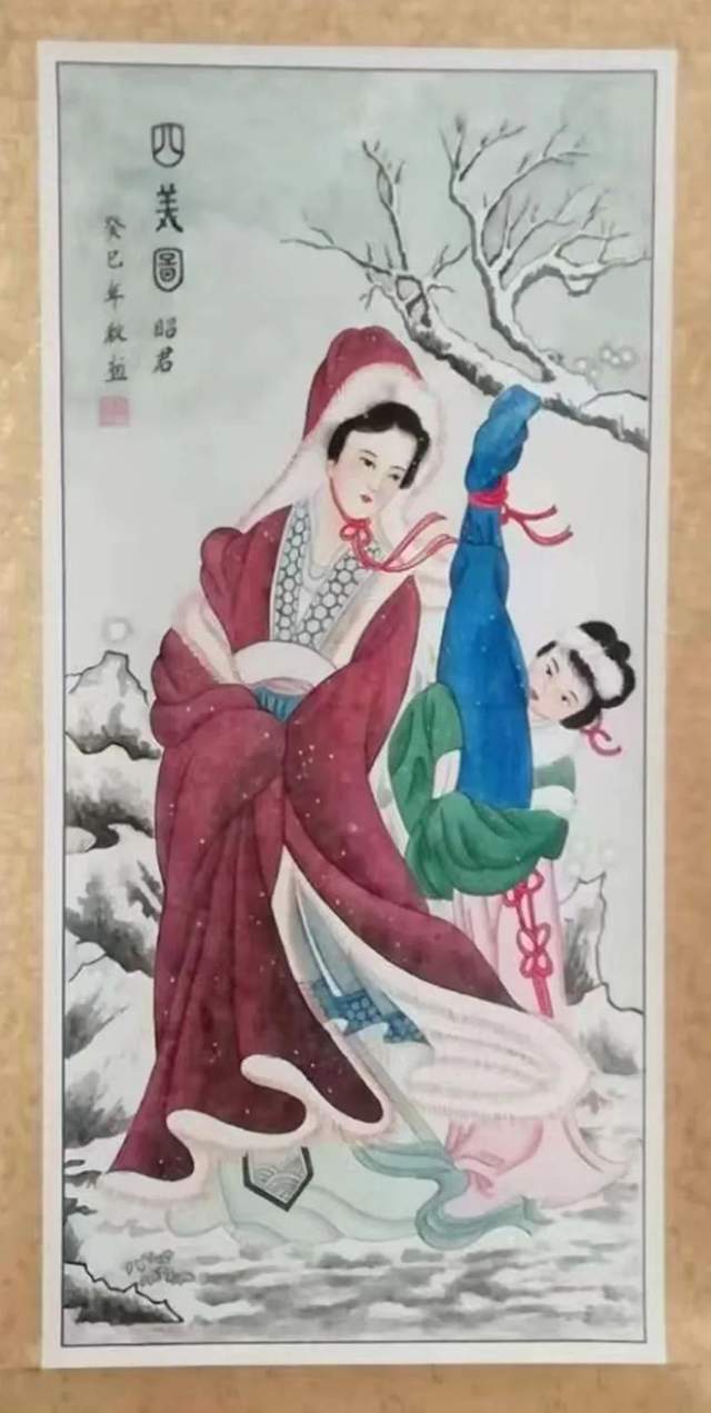 先生作工笔画,并没有完全拒绝西方的绘画经验,而是合理地接纳了比例透视等优秀技巧,融合到了工笔的创作当中,不仅如此,在作品的气韵上,先生一扫明清以来的颓废画风,所追求的是传统的古典审美情趣,力求在尽精微中展现出致广大的风魄气韵,为画坛呈现了自身独特的工笔新气象。其作题材多以古代仕女为中心,画中笔法精微细腻,灵活多变,严谨如一,老道贯气,尤其是衣纹皴擦,笔笔贯气,柔而不杂。在人物着色上,先生用色绚丽典雅,清静自然,且拿捏得十分恰当,浓的不烈,淡的不流,渲染罩色,无不精湛而为之!