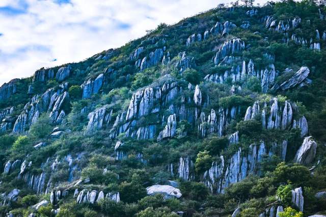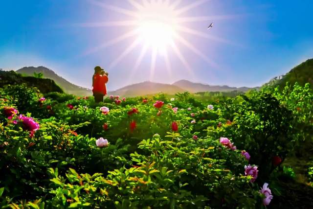 何况春日来临,游人仰慕。紫气谷升,画图笔妒。悬壁而断云,层峦而锁雾。惊狭谷倚之云天,叹玉槐开之万亩。放眼观之堆雪无垠,采花怜之香槐凝露。犹如北国之风光,且蜂蝶翻飞;绝胜梨花之淡雅,而馨香漫渡。况且王石门村③,俯瞰齐鲁。谓之天上人家,堪之人间都府。可揽月摘星,常穿云行路。石墙红瓦客之常来,曲径清幽香之频拂。更有多彩之牡丹④,若无边之绢塑。或白或红,或苞或怒。含露盈盈,散枝楚楚。拍之定格群英,吟之永留逸趣。奇也,天上开之牡丹;美也,黎民居之殿宇。至若接天枫染,如一片之火红;逢雪梅开,约三生之香许。故誉之国家4A景区,大美香山共睹也。