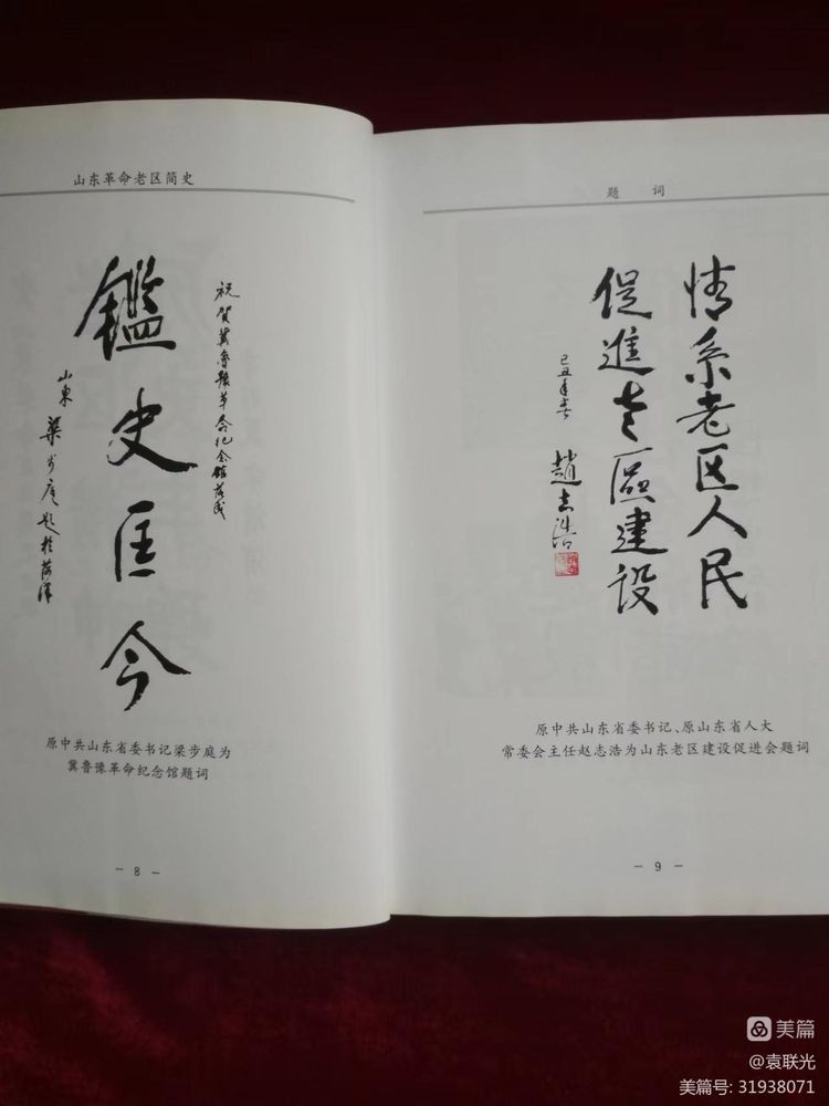 原全国人大副委员长姜春云为本书题签书名。原中央军委副主席迟浩田上将为山东老区建设促进会题词。本书编写出版过程中,得到了山东省、济南军区和山东省军区老同志的热情支持。原中共山东省委书记、老红军干部苏毅然为本书作序。济南军区原政委宋清渭上将为本书的出版亲笔题词。原中共山东省委书记梁步庭为冀鲁豫革命纪念馆题词。原中共山东省委书记、省人大常委会主任赵志浩为山东老区建设促进会题词。原山东省政协主席陆懋曾为山东老区建设促进会题词。