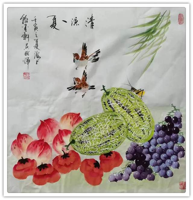 白石大师曾言,画花卉必须有虫鸟陪衬才更生动,纵览先生的花鸟之作,也正是如此,画中先生时常加入鸡禽鸟兽,以此来增添生动之意,而更令人拍案叫绝的,当属先生对牡丹枝干龙飞凤舞的穿插经营,同时这也是他人最难以模仿的地方,其作品无论是清秀荷花,还是春风紫藤,又或金秋瓜果,一一皆是巧用留白,画面简约而意远,整幅构图给人以强烈的精神感悟,处处见性情,更见意韵,众幅作品,花鸟虫禽,小景写真,虚与实,隐与显,动与静相互交织,协调如意,得心应手,暗自天成,画面的情景也因此得到了品质的升华!