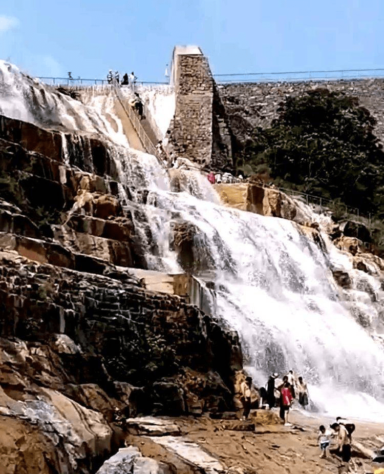 坐落在卫辉市西北霖落山的香泉寺,寺旁石隙中有泉常态流出后,穿岩流石,喷水洒云,飞溅岩畔,泄作瀑布,其声琮峥,是卫辉古八景之一“香泉水响”所在地。如今夏日,重现昔日音韵,着实令人心向往之。今夏日雨水较多,加之香泉水库在去年洪水期间的存水量,山区稍有雨水,就会生动飞歌。于是产生了香泉水库大坝出现九连瀑的壮观景象。十里河床也清水悠悠,咏叹着鹅卵石的色彩,伴着生成的音声韵律,自在逍遥后,打个响指,向东奔去。