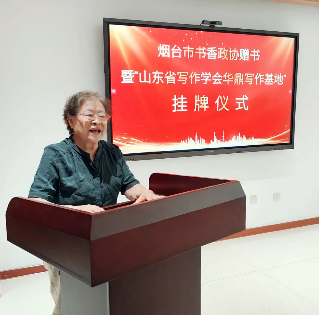 山东省写作学会会长、山东师范大学教授、古籍整理研究所所长韩品玉在致辞中说,山东省写作学会华鼎写作基地的建立,这对作家来说是一次良好的学习机会,我们会用心的体验烟台风土人情、感受烟台历史文化,让文学助力城市发展,让文学书写时代脉络,畅想伟大时代,可持续打造山东写作发展新高地。