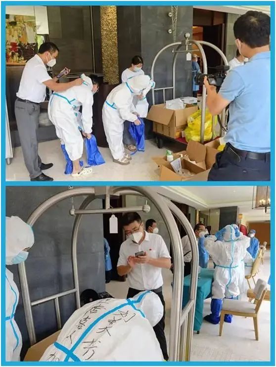 为保障酒店客人、员工的健康和安全。酒店每天为滞留在酒店的住客和坚守在一线的员工提供营养丰富的一日三餐,饭菜均采用打包的方式送到客房,无不让客人及员工感觉着酒店家人式的关爱。除了酒店的日常工作外,还要去各个楼层回收垃圾,进行依照医护人员的指示,严格的卫生清理,严格按照政府部门的要求落实相关防疫工作。