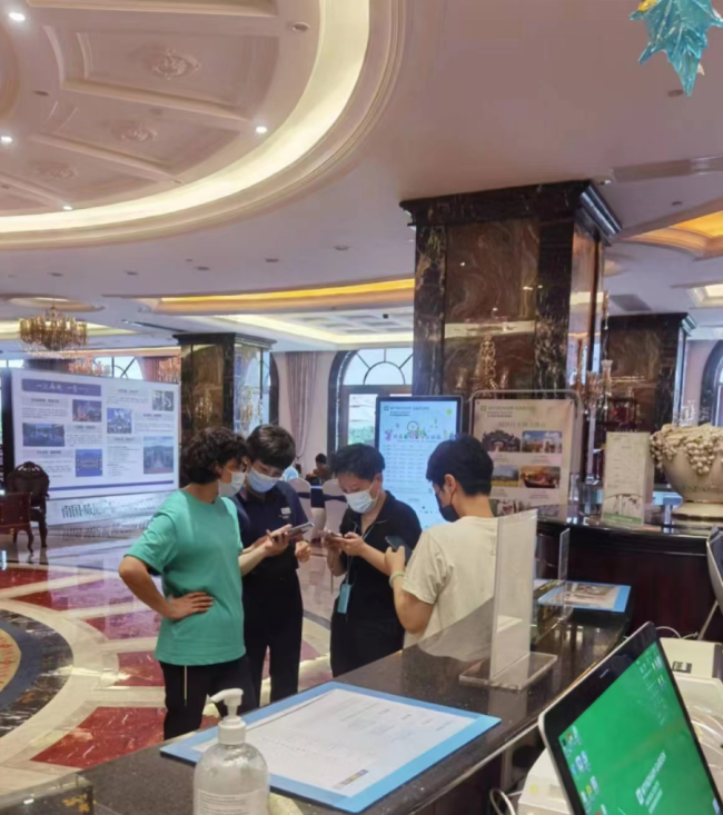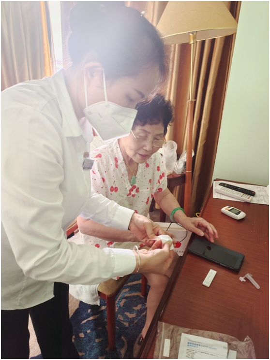 酒店入住部分老年宾客不熟悉手机操作流程,客房主管每天耐心帮助他们完成抗原自测并上传测试记录,解决了老人的无助和焦虑,如今客人和我们的工作人员像是一家人齐心协力,共克疫情!