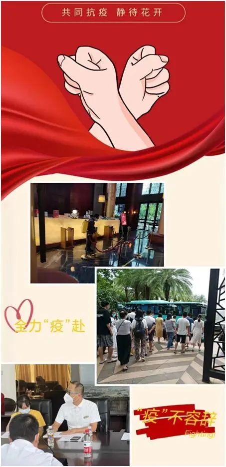 疫情期间,根据海南疫情防控要求,酒店在确保各项安全的前提下加强疫情各项防控工作。全体员工按照酒店疫情轮班制度要求,每天冒着被感染的风险来到酒店上班,坚持在疫情风险前沿,接待五湖四海宾客,始终坚守在各自工作岗位,兢兢业业,任劳任怨。
