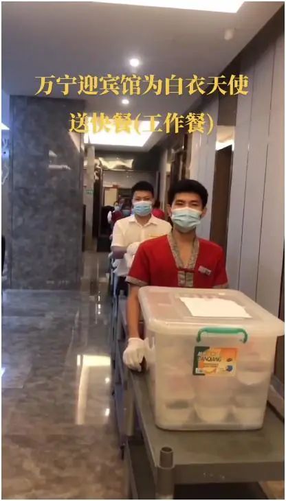 万宁迎宾馆疫情期间每日坚持为医护人员送200多份营养爱心餐!并主动为滞留住客提供携程半价的特惠。