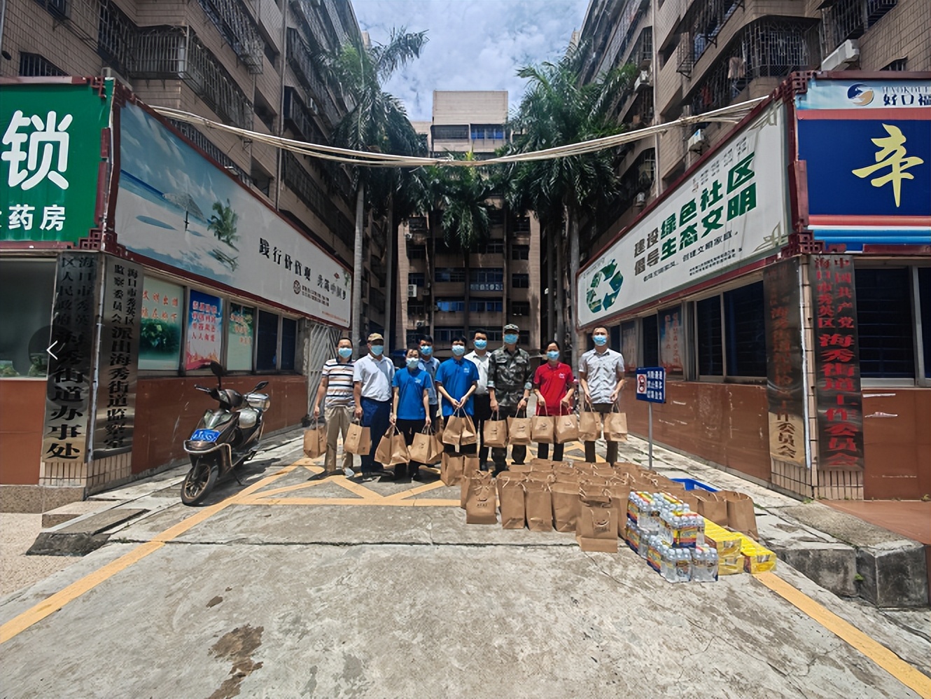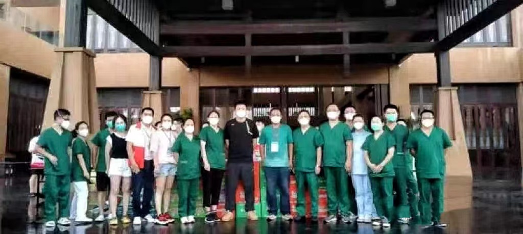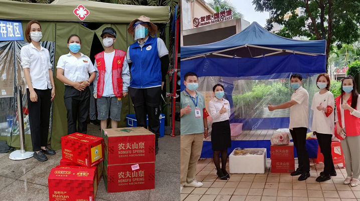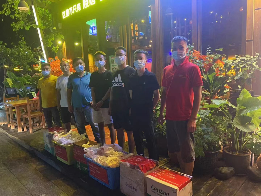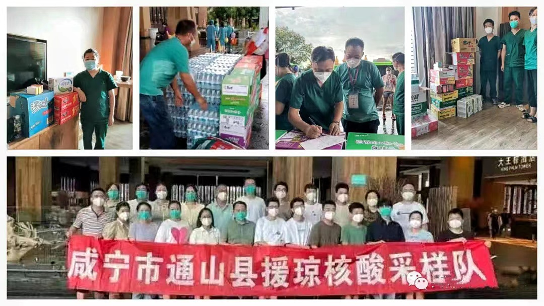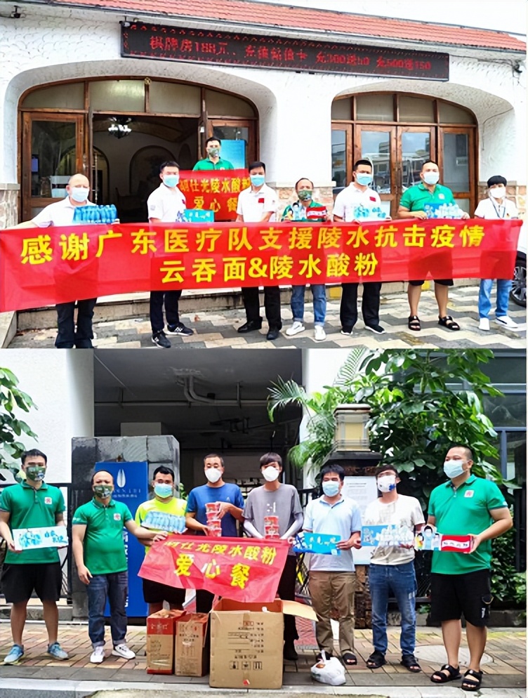 8月6日,湖北咸宁医疗队到达三亚后,省酒餐协主席、省咸宁商会常务党支部书记、海南德福轩酒楼董事长邵淼清第一时间安排人员为医疗队送去矿泉水30箱和快餐面30箱应急,并于8月9日发起捐款接龙,半天时间筹集资金在三亚当地购买物资送到咸宁支援海南三亚医疗队手中。