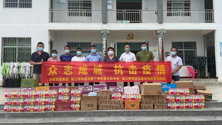 8月11日中午,海南恒基集团联合昌江黎族自治县个体私营企业协会、昌江黎族自治县市场监督管理局向昌化镇昌农村、旧县村捐赠了口罩、矿泉水、方便面、面包等生活物资,贡献爱心传递力量抗疫情。