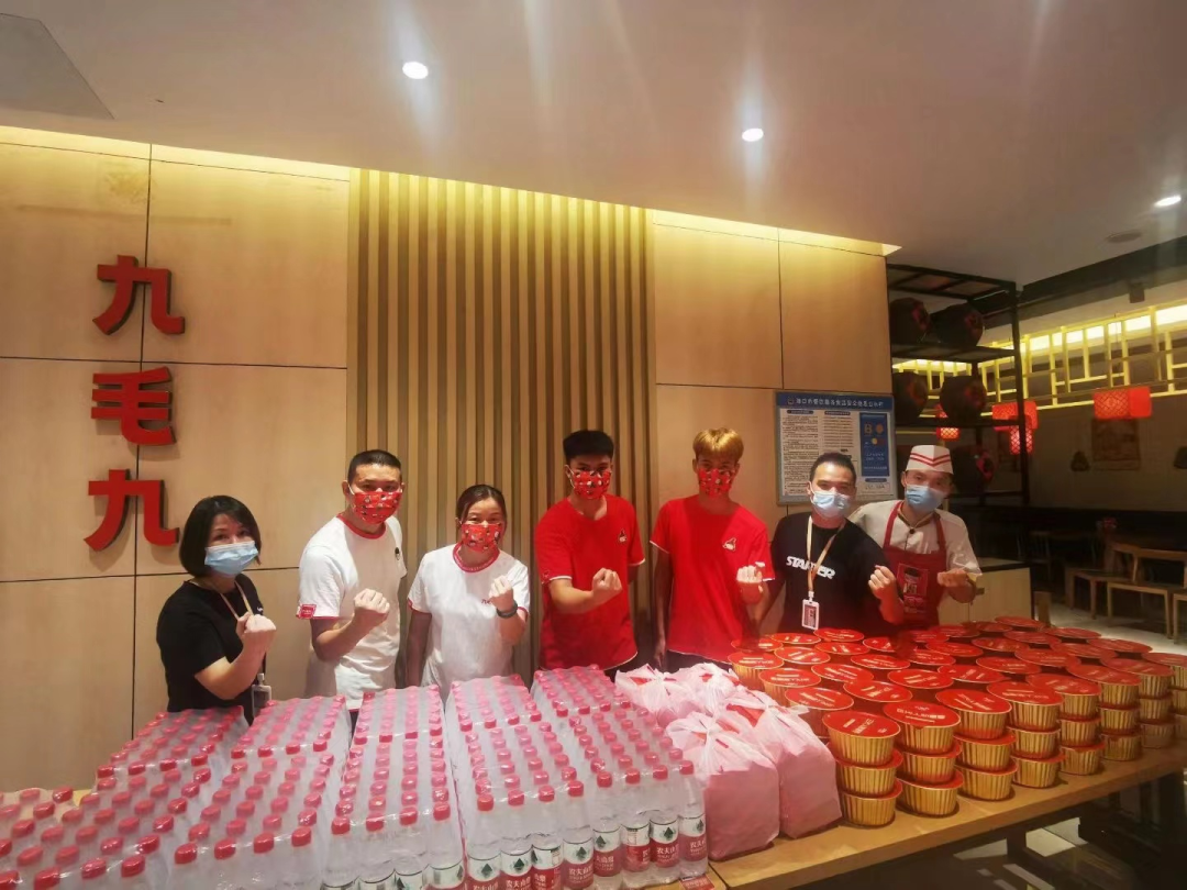在海口疫情静态管控下,海南九毛九向金鼎社区抗疫工作人员捐赠250份盒饭和矿泉水,以实际行动尽企业的一份责任和爱心,为抗疫共同作战。海南,加油!