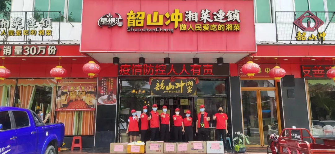 韶山冲湘菜连锁员工为抗疫一线的工作人员公益送餐海南加油,儋州加油,团结就是力量。