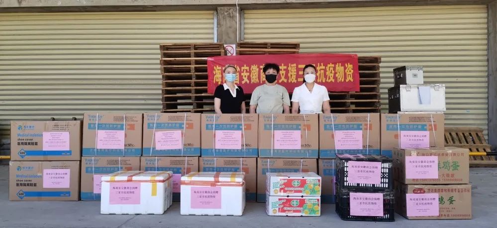 无私天地宽,铁肩担道义。“你们缺什么?现在需要什么?”这是三亚安徽商会打通三亚市红十字会工作人员电话后说的第一句话。自“0801疫情”暴发以来,三亚确诊病例激增,三亚安徽商会党支部书记李宏、会长夏杰、秘书长丁贤伟带领全体会员自觉投身当地抗疫工作,主动为三亚前线防疫工作人员提供防疫物资、生活物资,让在疫情前线工作人员能够保护好自身安全的同时与病毒作斗争。8月10日三亚安徽商会在取得通行证的第一时间通过三亚市红十字会向疫情指挥部仓库运来价值52510元的防疫物资和35050元的食品物资。