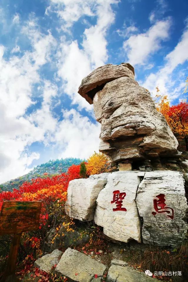 傍云明仙境,仰半山之壁,有一尊高大雄壮,骏马一匹,浩状奔腾的石头。这块精美的石头,它有一个美丽的传说,伴随而诉说着端士人走过的悲欢岁月:很久很久以前,玉皇大帝青龙马看人间劳作辛苦,恻隐之心顿起,私自到凡间帮助劳作,以减轻人类生活的艰辛。因违反天条,被发落人间,成为一尊有生命却无法行走、无法言说的石马。历代生活于斯的老百姓把这匹石马尊为守护一方的保护神。人们为了保护它,朝朝供奉,为它在村内三棵槐前定为马场,用青石板做了一个石马槽,如今,石马与马槽依旧,数千年亘古未变。
