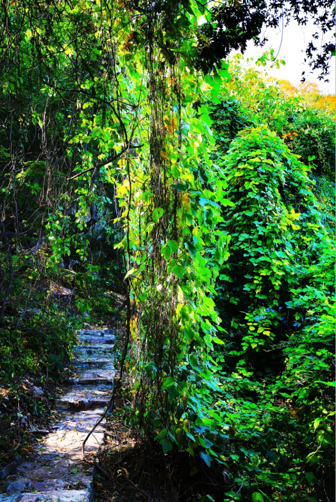 古藤园是原始苍茫的野生植物园,这里有北方少见的多年生木本藤萝,众多的藤萝,说明了云明山中流水潺潺,做为一处生态自然景观,天然氧吧,负氧离子含量每立方厘米102800个,藤萝植物互相缠绕遮天蔽日,幽与静在这里完美融合。同时,千树万树、千藤万藤交织成为一道亮丽的自然景观……