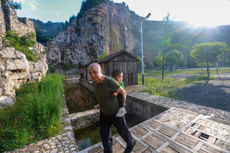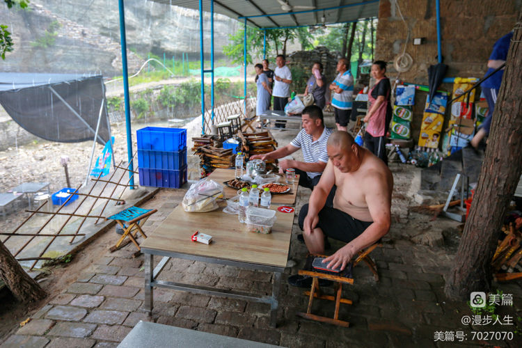 我们先来到石匣村,记性游览,天突降暴雨,的确淋了不少人,此处山高天小,让人防不胜防。半个多小时的雷电急雨,使河水暴涨,大街小巷都普天横流,但天气凉爽了不少。我们沿公路继续上行,到处流水,街道也很难行走,我们为了安全起见,从东流泉村就原路返回。