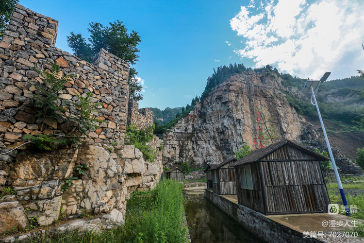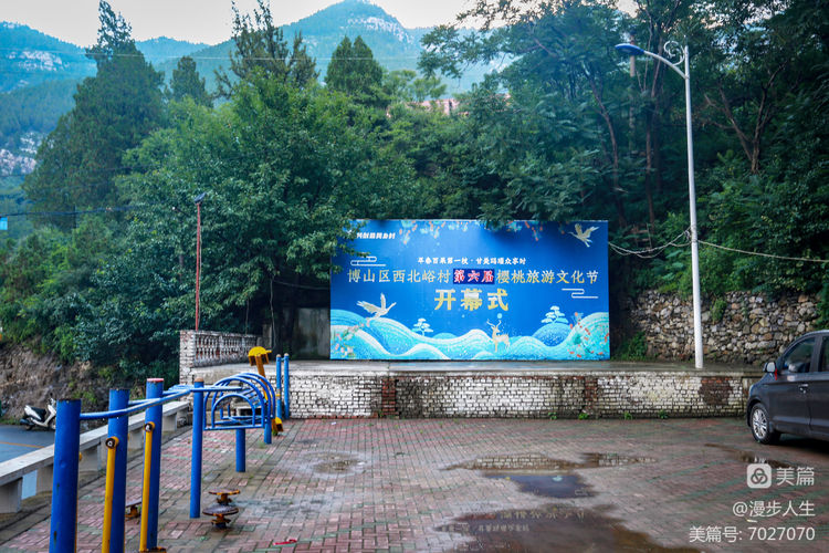 不料,瀑雨过后,彩云追风万里晴,给人一种更美更清凉的感觉。返回途中,车子拐弯驶向了另一条山沟----西北峪村,这也是好久想要去的村庄。清乾隆八年(1743年)《续修淄川县志》、清乾隆四十一年(1776年)《淄川县志》均有“北嘴子”的村名记载。 该村65岁村民袁崇业讲:袁姓来此定居以前,已有殷、郎、孙诸姓在此居住。因该村处于北嘴峪、故定村名为“北嘴”,又名“北嘴子”。后因村众以北嘴之名不雅,故于民国十年更名为“北峪”。经博山区人民政府批准,于1982年更名为“西北峪”。 西北峪村交通非常方便,四面环山,村里管理的条条有序,村民都住上了楼房,北行山路就是昆仑镇的牛记庵。高高的石牌坊矗立在村头中央,几座精致有雅的别墅,有层次的建在山脚下,村中央繁华地段龙凤社区,高楼四起,沿公路上行,层层水坝一直延伸到夹谷台下的不夜谷。风景优美,风水宝地,给人一种美的感觉,美的享受!