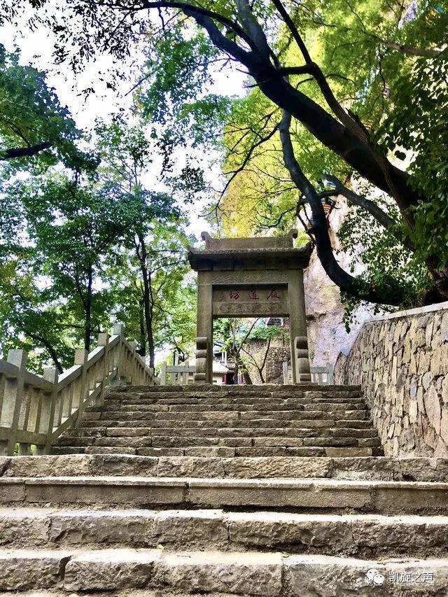 爬到山顶,有一牌坊。“红叶谷”这三个字让我们知道这里就是秋末看红叶的最佳去处了。