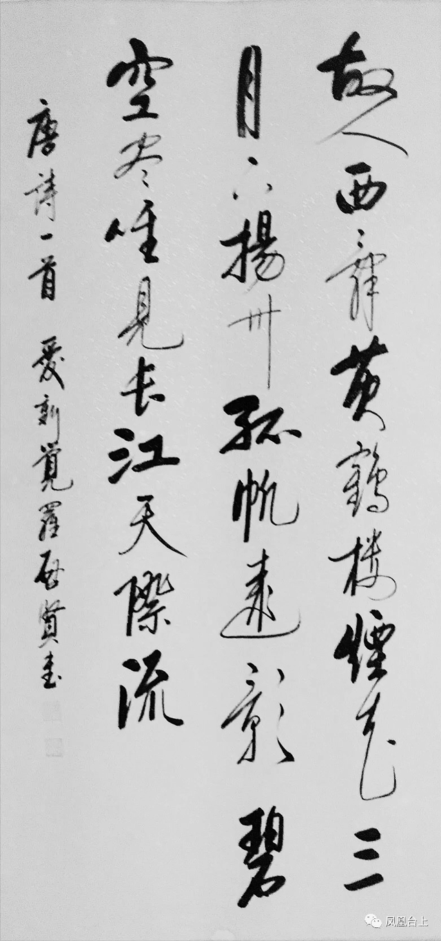 本世纪初华联搞活动,我买完衣物还参加了抽奖活动,说我中了二等奖,抽到一幅字,但要收裱画费150元。好像是个套路,不过,我看了真心喜欢李白诗和那幅字,是由爱新觉罗启贤写的李白诗《送孟浩然之广陵》,全诗写得疏密有致、灵动飘逸,随即就付钱了。网上查看,启贤是启功的族弟,著名书法家。现在孔夫子旧书网上,他写的《春晓》五绝诗,起价1500元,那幅字尺幅要小很多,也不及他写的这首李白诗漂亮。