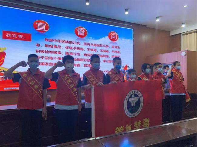 “我宣誓:我是中华民族的儿女,坚决与毒魔作斗争,珍爱生命,拒绝毒品,保证不吸毒、不贩毒、不制毒、不种毒,积极检举吸毒、贩毒行为,自觉抵制毒品侵蚀,积极投身于禁毒斗争行列,我将履行禁毒誓言,牢记历史使命,为国家禁毒事业献出青春、智慧和力量。”——整齐嘹亮、高亢激昂的誓言飘荡校园的上空,久久不散,挺拔的校内白杨见证了这一光荣时刻,它们停止了随风喧哗,肃立在校园里,成为一排排守护青春成长的防线。