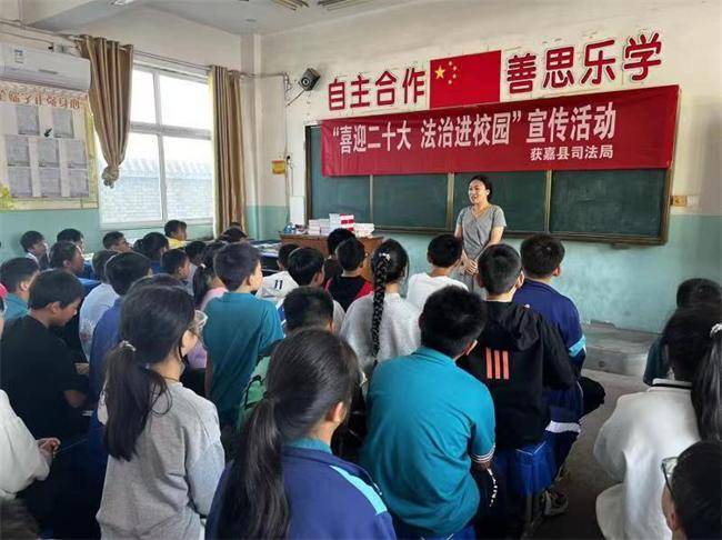 为全面学习贯彻落实法治思想,加快推进新时代法治校园建设,9月22日,获嘉县司法局副局长杨雪带队深入城关镇后李小学开展“喜迎二十大 法治进校园”专项法治宣传活动。