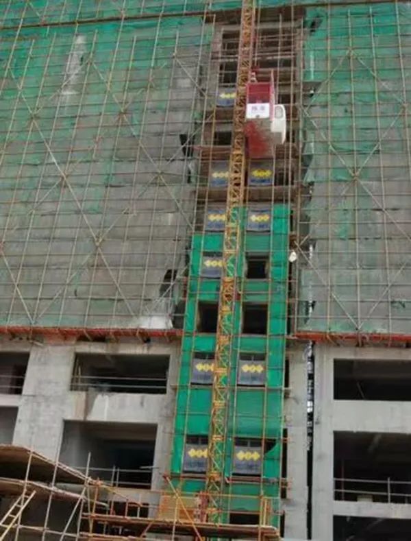 站在晃荡的简易电梯里