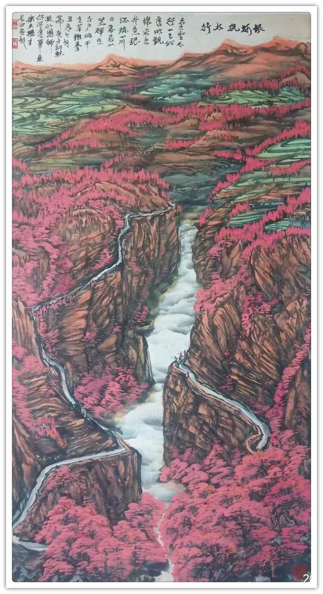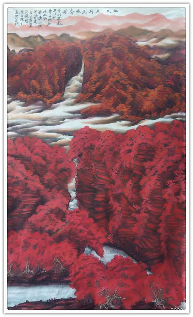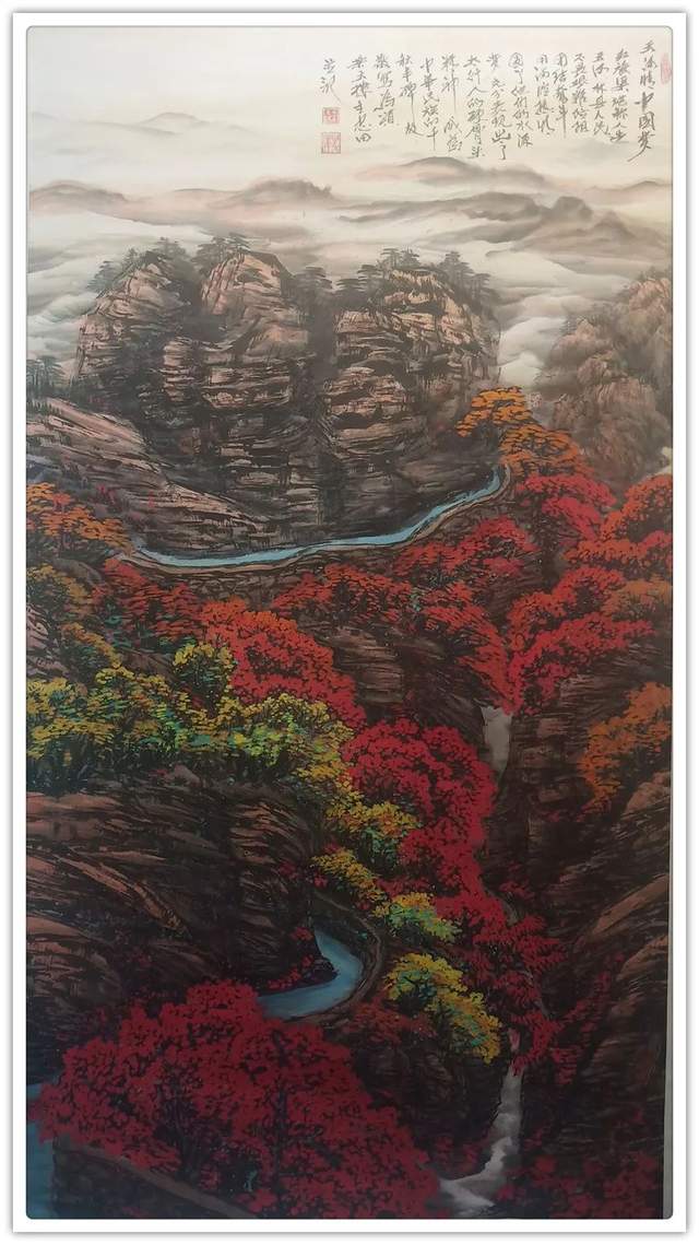 视界开打,胸襟打开,他就可以骋笔纵墨,把一览山水的奇观,写意成叩击山河的精神!他不但有骨法用笔、随类赋彩的专业历练,更有以书画为往圣续绝学,为中国立精神的担当,以令红墨山水,成为龙脉鸿图的代言图腾!难怪当代书画大家陈传席在观其作品后,受山水激励,欣然写下:承前启后出新意,霞骨颖韵自家风的诗赞,以作马忠田画集之首!后来赞其画功者绵绵不绝,美评灼赞动盈卷轴。马忠田以奇巍红墨山水高歌时代的功勋,可谓是大著其名,真实不虚!