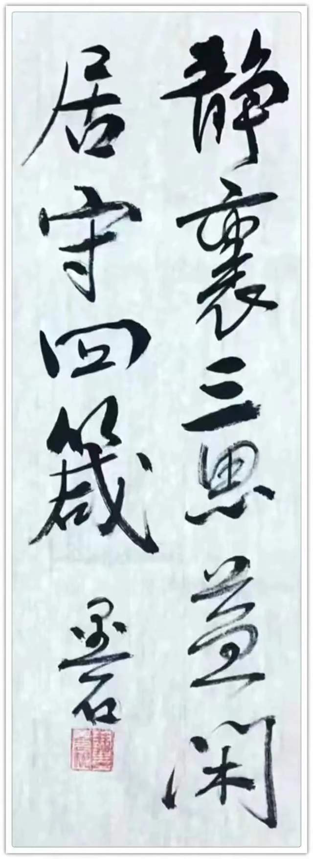 徐成立评价:他的书法艺术成功地吸取了书法大家的艺术精华,结合现代生活的感受和意识,营造出极高的意境和情趣,形成自己独特的风格。陈诗华先生说:一个艺术家的创造力,往往就是建立在对其他姊妹艺术的感悟之中,只有对艺术的共性有通透的把握,然后才会在一门艺术上豁然开朗,才有可能比别人走得更远。
