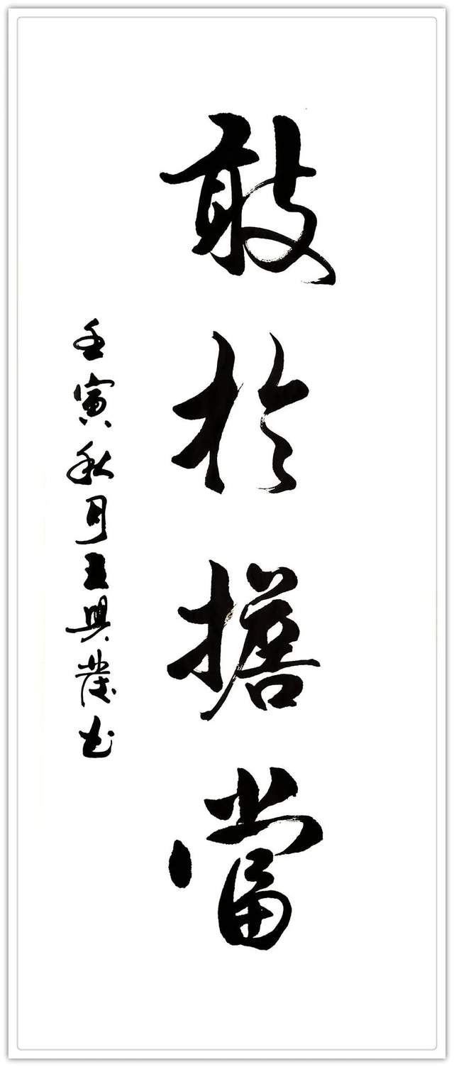 要论书法功夫是得真谛,先不需要言东说西,只要把楷书作品在桌面一摆,便可以立觉优劣。楷法无欺,只是当代书坛不修唐楷之法,直接狂草的现象太多,所以书法的整体法度水准有滑落。王兴发先生的楷书,以颜楷之筋骨和柳体之瘦硬为参照系,又吸纳进欧楷的笔法精绝,所以融会贯通尽写无欺之功,楷书写正大,一目了然!横如孤舟之列江渚,竖如春笋之抽寒谷,方不中矩,圆不中规,楷书功夫绝然是法不其人,功不欺世的典范!
