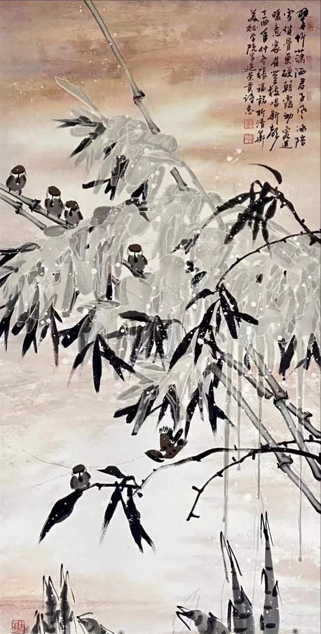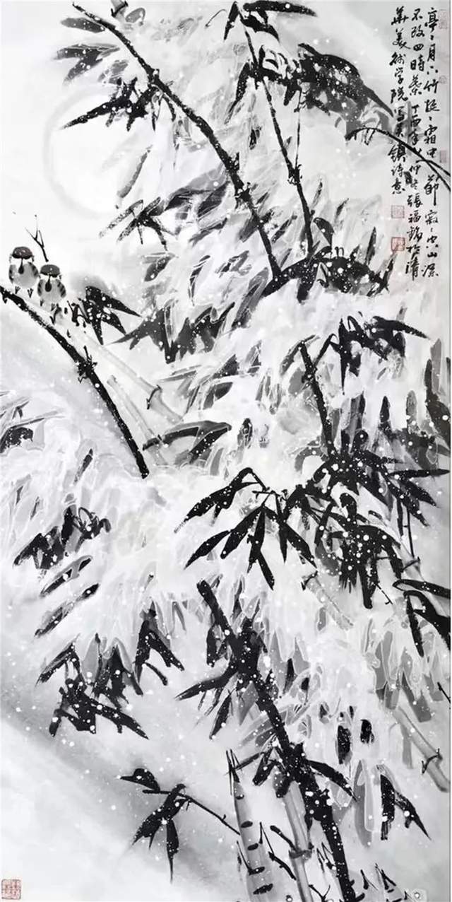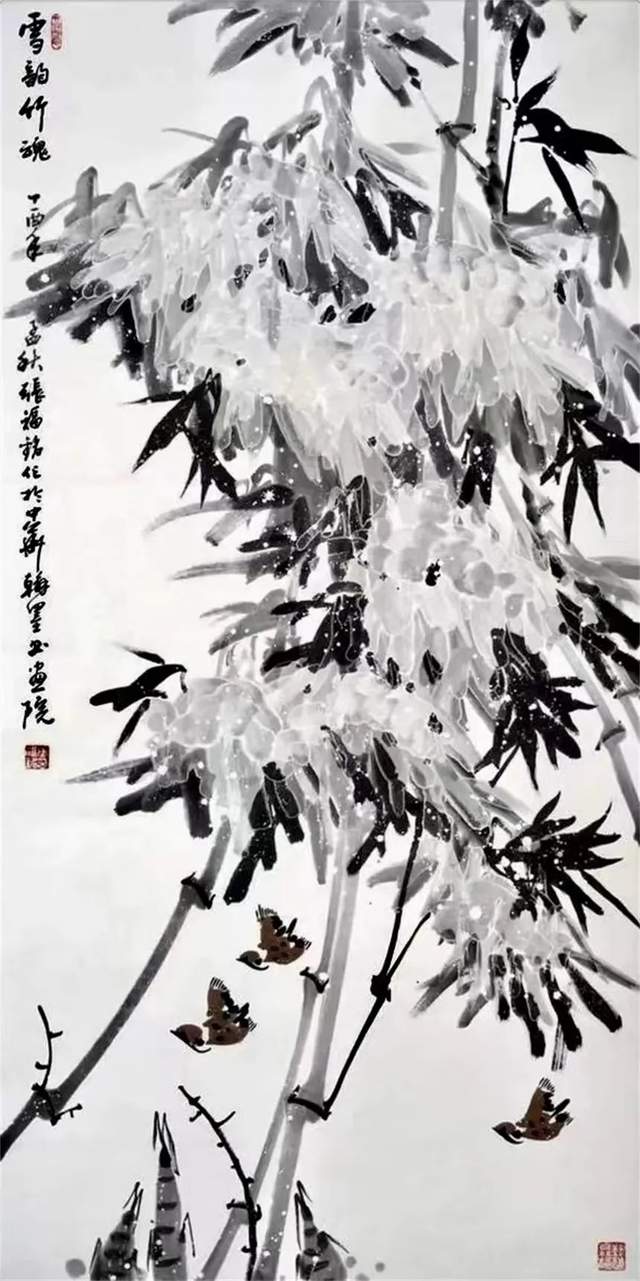 先生的书画艺术历练出非凡的影响力,与他历练人生同工异曲!参军二十六载,早生华发修武备、笔作长枪文载道!他心有军旅情怀,情有报国之志,所作丹青形神兼备,尤贵于神。以铁胆雄魂写寒竹,风萧萧,劲节凌冰,刚且韧,劲且强!成为一题专享的艺术课题。竹圣郑板桥没有这样画过,张福铭把自己在军营历练的所有感受与积淀画成了筋骨劲竹,亘古未有。竹作人格化,画写精气神,独树一帜,大振心颜!军营励志,丹青写魂。这就是张福铭先生文武兼备涵养出的独特创造力!