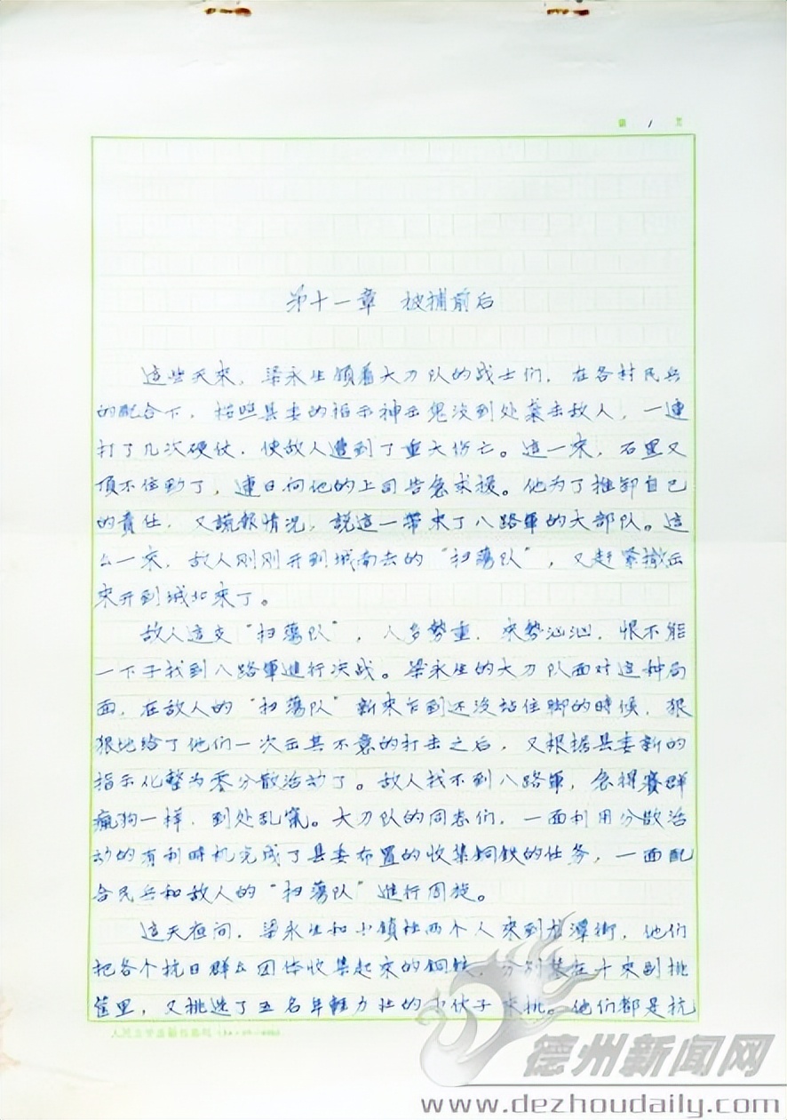 说起父亲郭澄清,激动时,郭洪志会起身把郭澄清发表过的东西都拿出来,一一给记者翻看。而在这些“宝贝”中,存放最仔细的是厚厚的一摞《大刀记》手稿,“这既不是1972年版的《大刀记》,也不同于1975年版的,我也不知道这是哪一年成稿的哪一版《大刀记》。 ”郭洪志说。历经数十年的岁月,从郭澄清那工整的一笔一划间,我们看到了一个人民作家的严谨和不屈。如今,郭洪志已着手这部完整版手稿的出版工作,计划今年五六月份发行。 “让完整版的《大刀记》与读者见面,我想这是父亲最大的心愿,也是对他最好的怀念。 ”他说。