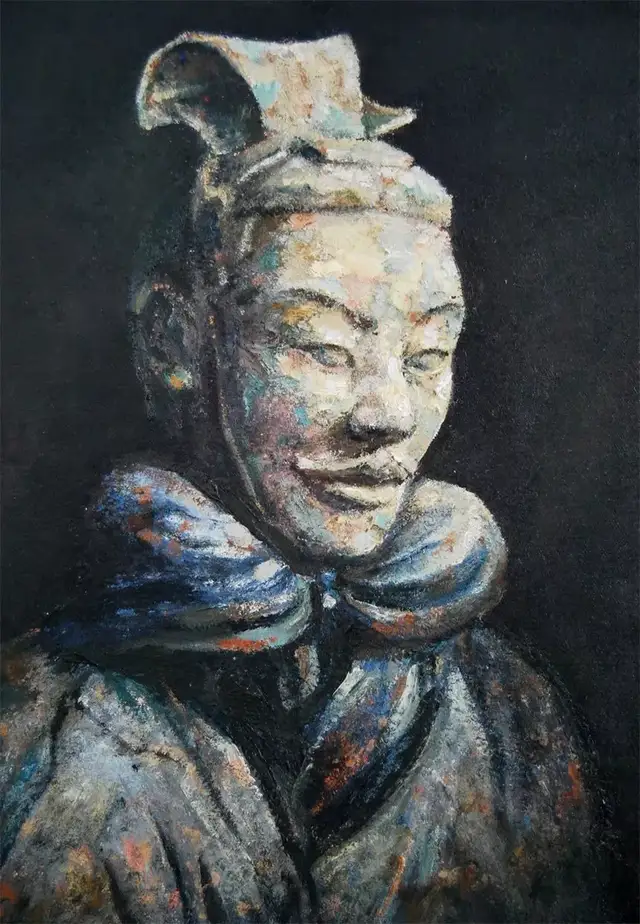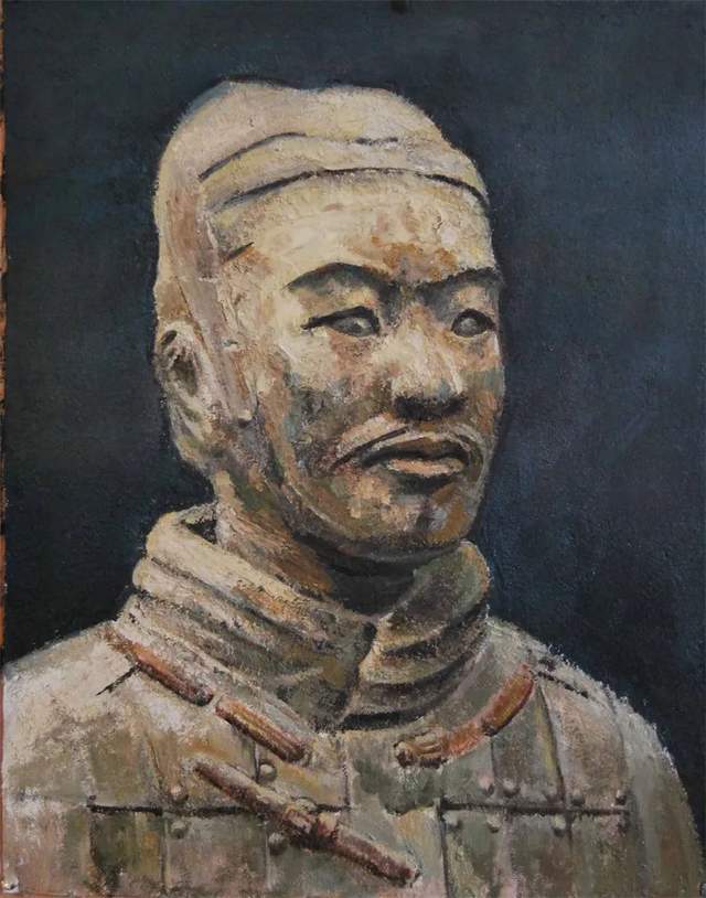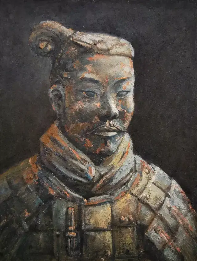 孙永印是一位非常专业的油画家,但是他与其他油画创作者有更加高远深沉的艺术思索习惯。画笔不随意浅绘风花雪月,时时能够深刻触及民族文化的精髓。他把历史深处的现实场景,通过油画的精工与庄严,表达触碰历史的文化责任意识,所以兵马俑通常是他借为所用的历史文化符号,用这种极有文化厚度的符号借助油画构建民族精魂,为五千年传承的历史点睛成采,在看似静谧的画境空间里,隐藏着宏大的文化叙述和精致的心境表达。