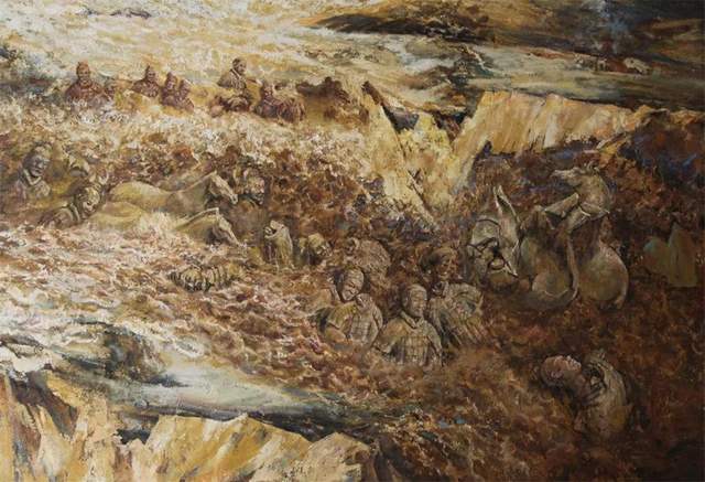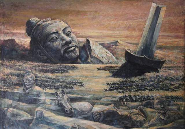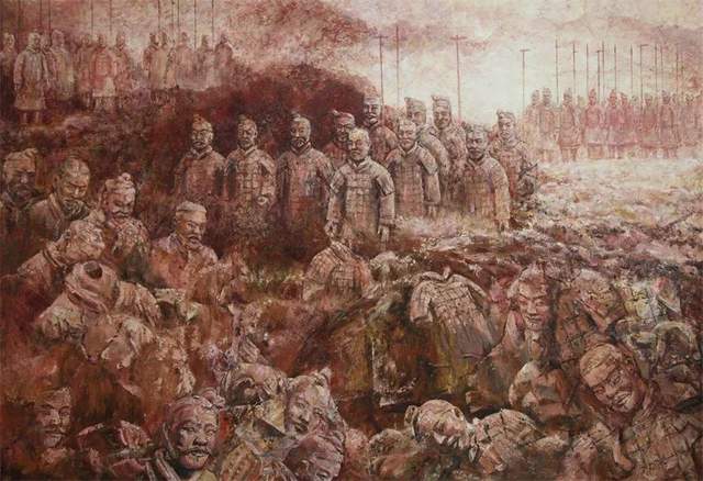 他的油画艺术,不仅仅为“画”而成,还在于为责任而担当,是油画叙事民族精神的卓意表现。孙永印用非常专业的画技,把油画的主旨构造引领至崇高意境。画面创作绝不为把玩独赏,而是要用画家的天赋才华,给人们带来心灵的震撼,用兵马俑的幻相记载一个又一个精彩的文化瞬间。站在这个角度来讲,孙永印的油画已经升华为民族的精神史记,达古通今,泱泱五千年的民族风尚,在他的油画里滚滚涌出,成为令人仰望而生情怀的艺术涤荡。
