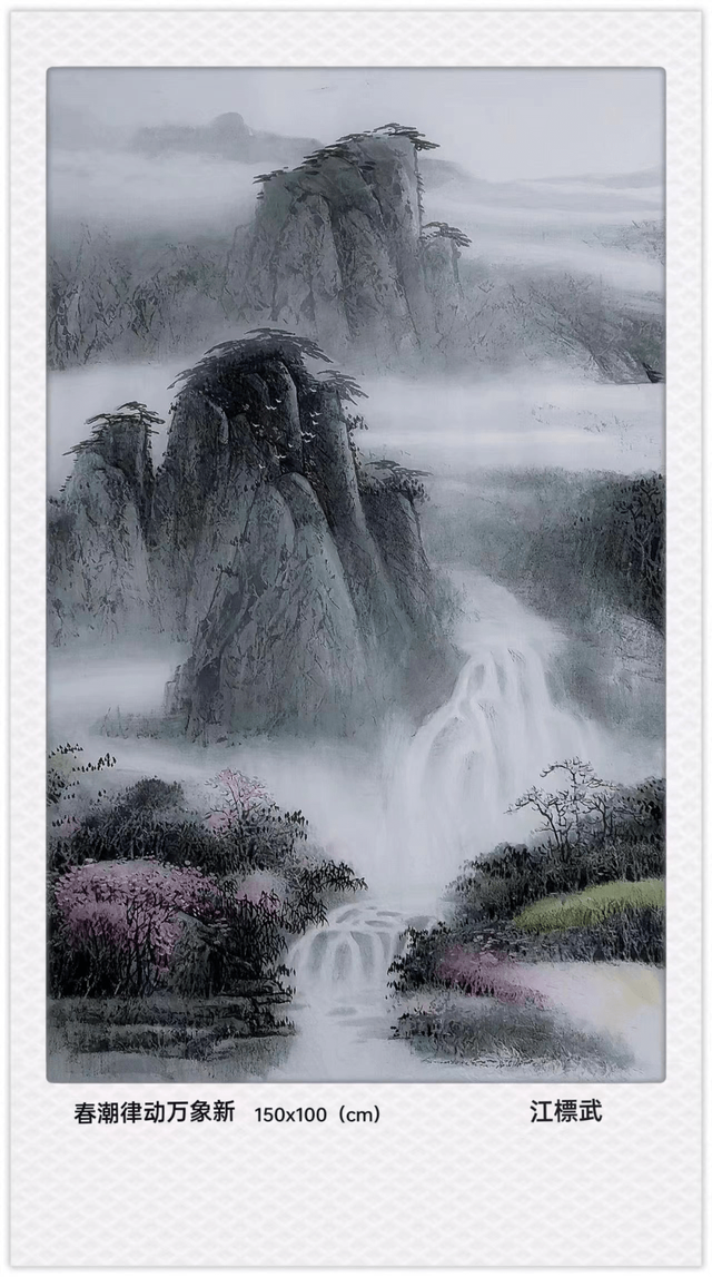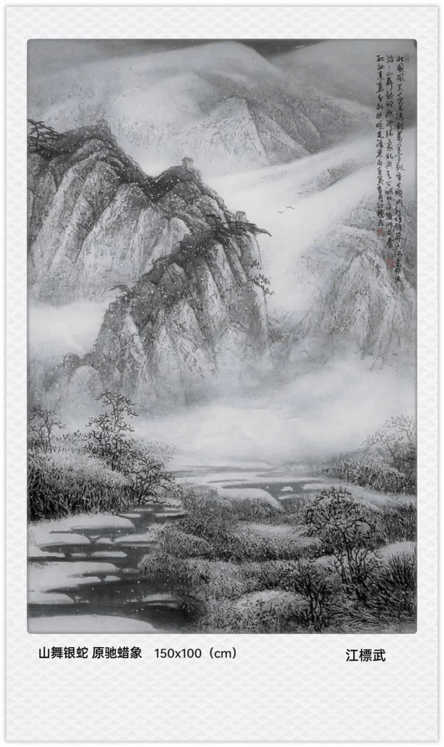 现为中国美术家协会会员;国家一级美术师;文旅部艺术发 展中心民间收藏艺术品评估鉴定委员会副主任;国家中外交流书画院常务副院长;北京东南美术馆馆长。江标武自幼练书,得沈鹏、邱零大师耳提面命,书法亦见功力。曾获全国书法大展银奖,其行、草书更显水平。传承白雪石“白派”山水画,气韵生动,别具风格, 是一位书画具佳的艺术家。2020 年荣列全国百杰书画名家,由中国美术家协会、中国 书法家协会等单位授于“德艺双馨人民艺术家”殊荣。中央外联部国礼特约书画家。作品载入中国历代书画名家数据库。