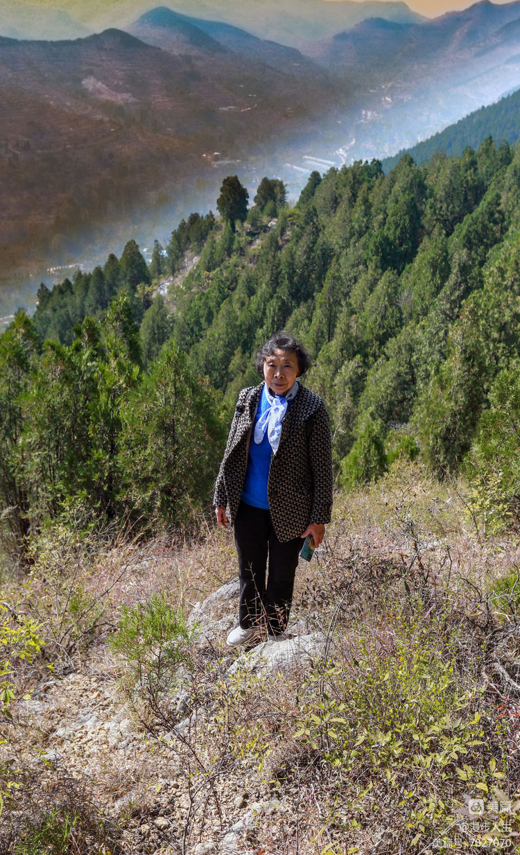 林密山高拄杖行,八六吟翁,登攀到顶峰。群山一览绿,淄江似带明。复观近景兮,山泉水澈清。岩洞藏龙,石门金马醒。留点朦胧,山名云雾中。