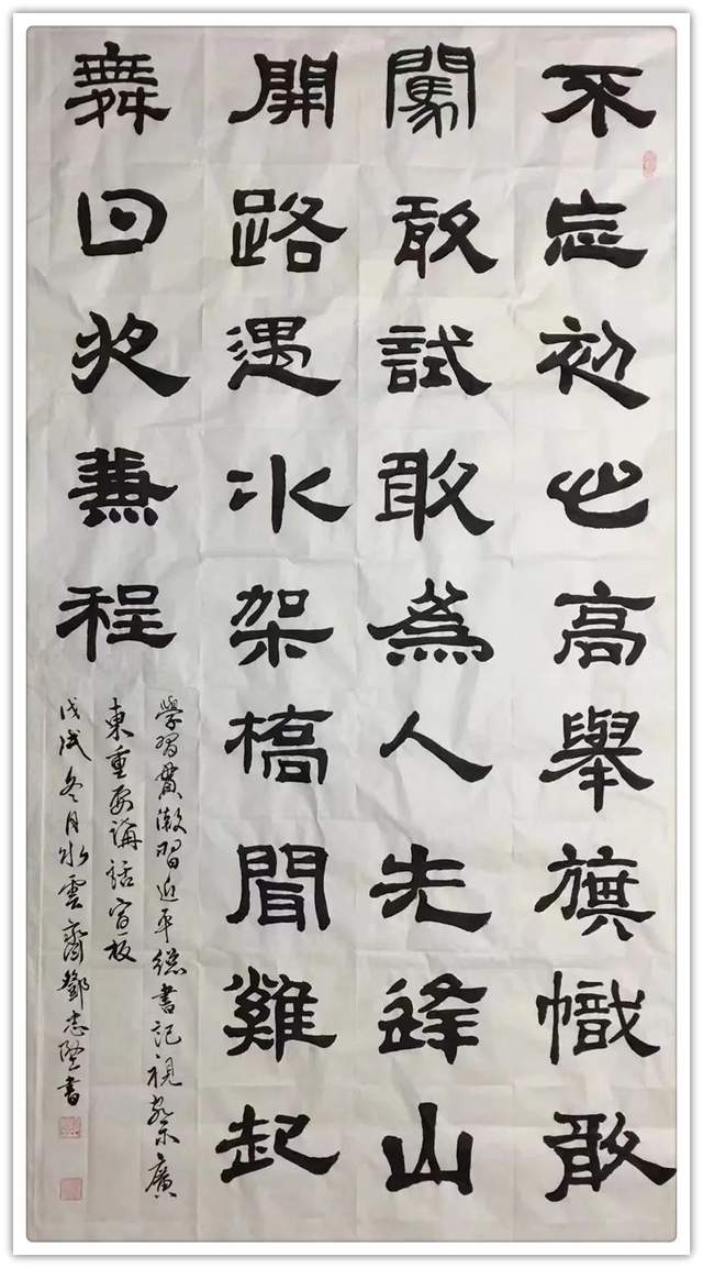 邓志坚,男,1954年生,中共党员, 1971年参加教育工作,曾任高校书法老师,广东省侨联第九届第十届委员,学校关工委委员,老年诗书画摄影研究会秘书长,国家一级美术师(美术、书法),中国书画家联谊会书画教育委员会委员,中国楹联学会会员,中国国际书画艺术研究会会员,中国文化艺术人才库一级书法师,中国北京六艺嘉韵书画艺术研究院院士,中国国家艺术网艺术家论坛发起人,臻品书画艺术中心合作艺术家。1975年9月至1976年6月脱产参加美术骨干教师培训班学习, 2015年退休后参加广东省老干部大学书法和国画专业课程学习。
