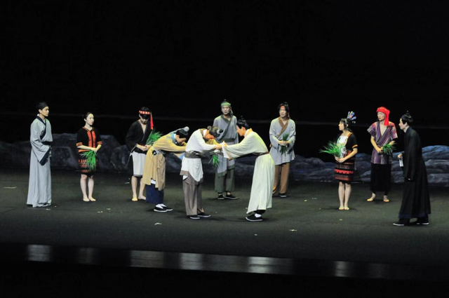 扮演苏东坡的刘一辰,毕业于北京电影学院,主演、参演过20多部影视作品。他在舞台上成功塑造了暮年苏东坡形象,使观众看到了一位把千里贬谪走成了清风徐来,把人生逆旅活成了逍遥自在的质朴和蔼老人。特别是他在人生的最后时光里,培养了海南历史上第一个举人,为这座海岛奠定了人文兴盛的根基。剧中苏东坡与姜唐佐的师生情感人肺腑,剧外刘一辰与诸多弟子的同台献艺,也有很多缘系东坡的幕后故事。扮演黎族峒主的杜飞,曾在多部影视剧里扮演重要角色,他表示当初加盟《海外东坡》剧组,就是因为剧情打动了他,通篇没有生硬的说教,没有刻意的煽情。比如苏轼苏辙的千古兄弟情,苏东坡与父亲苏洵和儿子苏过的父子情,与张中、黎子云的朋友情等等,情不自禁地让人产生共鸣,感同身受。