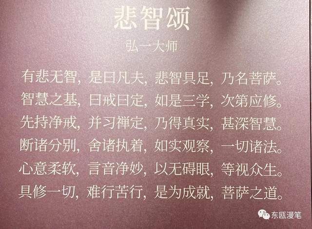 都说弘一大师“诸艺皆废,唯书法不辍。”陈金武则认为,少年功夫,诸般技艺,或可生疏,无法忘却。第三馆,LED满屏播放的合唱《清凉歌》,就是大师出家后的杰作,词意悲悯,直抵心灵。